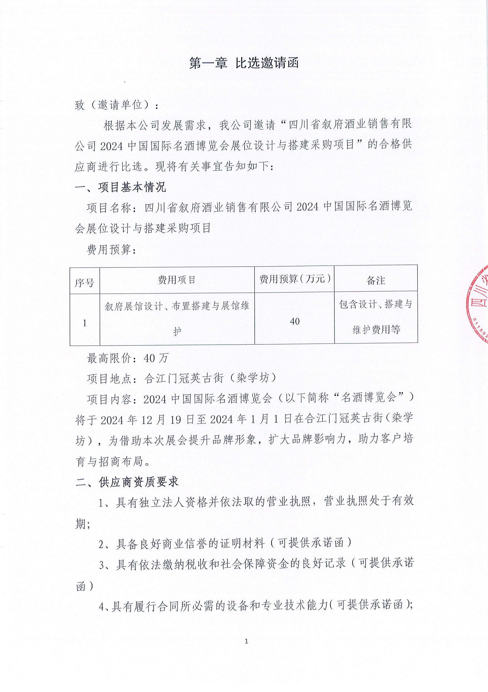 四川省敘府酒業(yè)銷售有限公司2024中國國際名酒博覽會展位設(shè)計與搭建采購項目比選公示公告