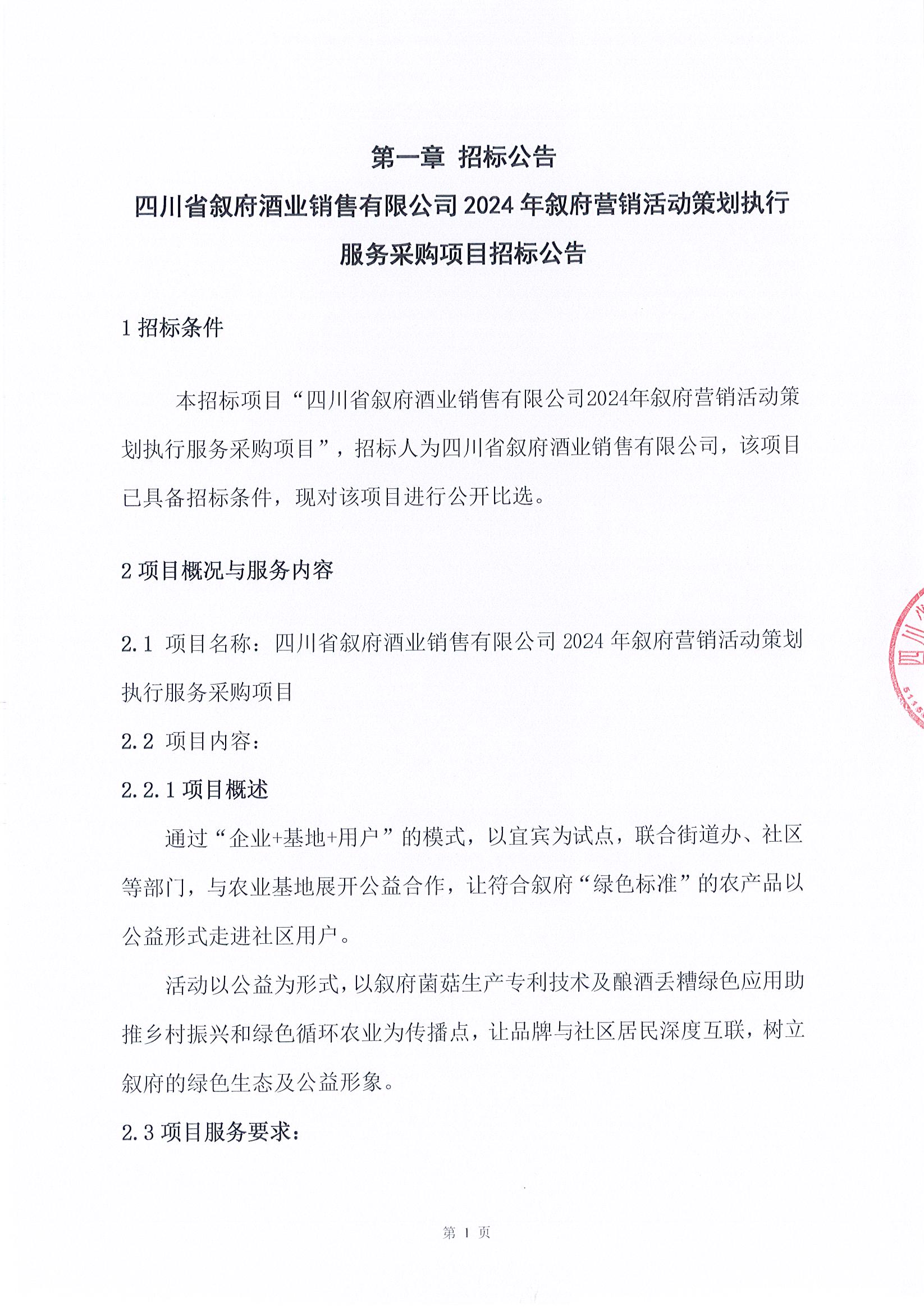 四川省敘府酒業(yè)銷售有限公司2024年 敘府營(yíng)銷活動(dòng)策劃執(zhí)行服務(wù)采購項(xiàng)目招標(biāo)公告