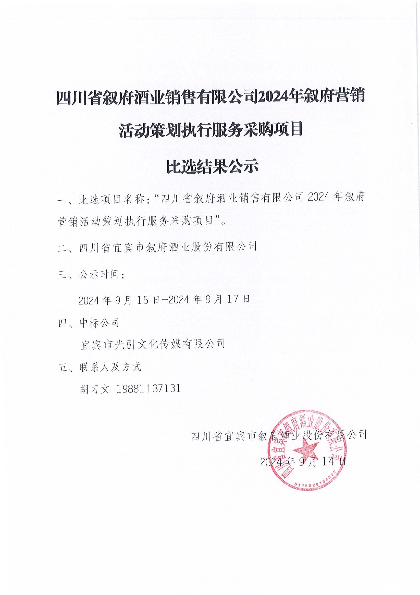 四川省敘府酒業(yè)銷售有限公司2024年敘府營(yíng)銷活動(dòng)策劃執(zhí)行服務(wù)采購項(xiàng)目比選公示公告