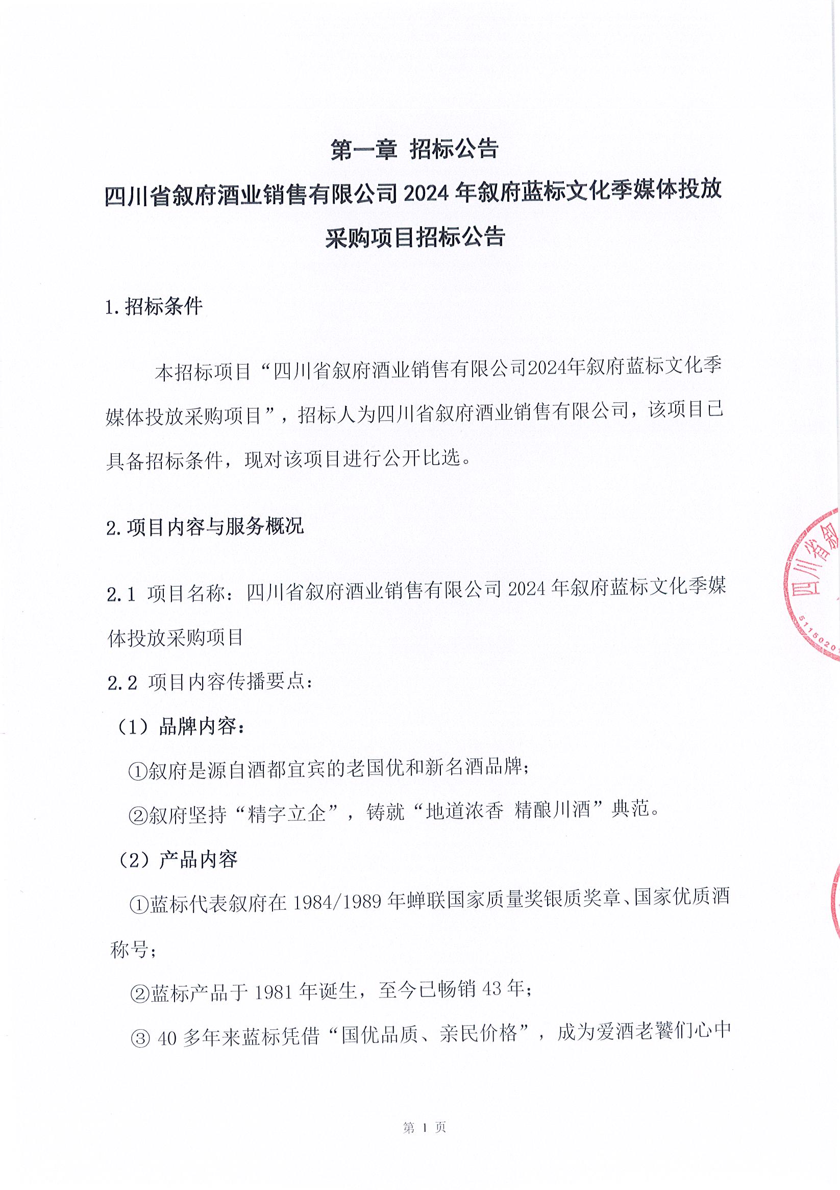 四川省敘府酒業(yè)銷售有限公司2024年敘府藍(lán)標(biāo)文化季媒體投放采購項(xiàng)目比選公示公告
