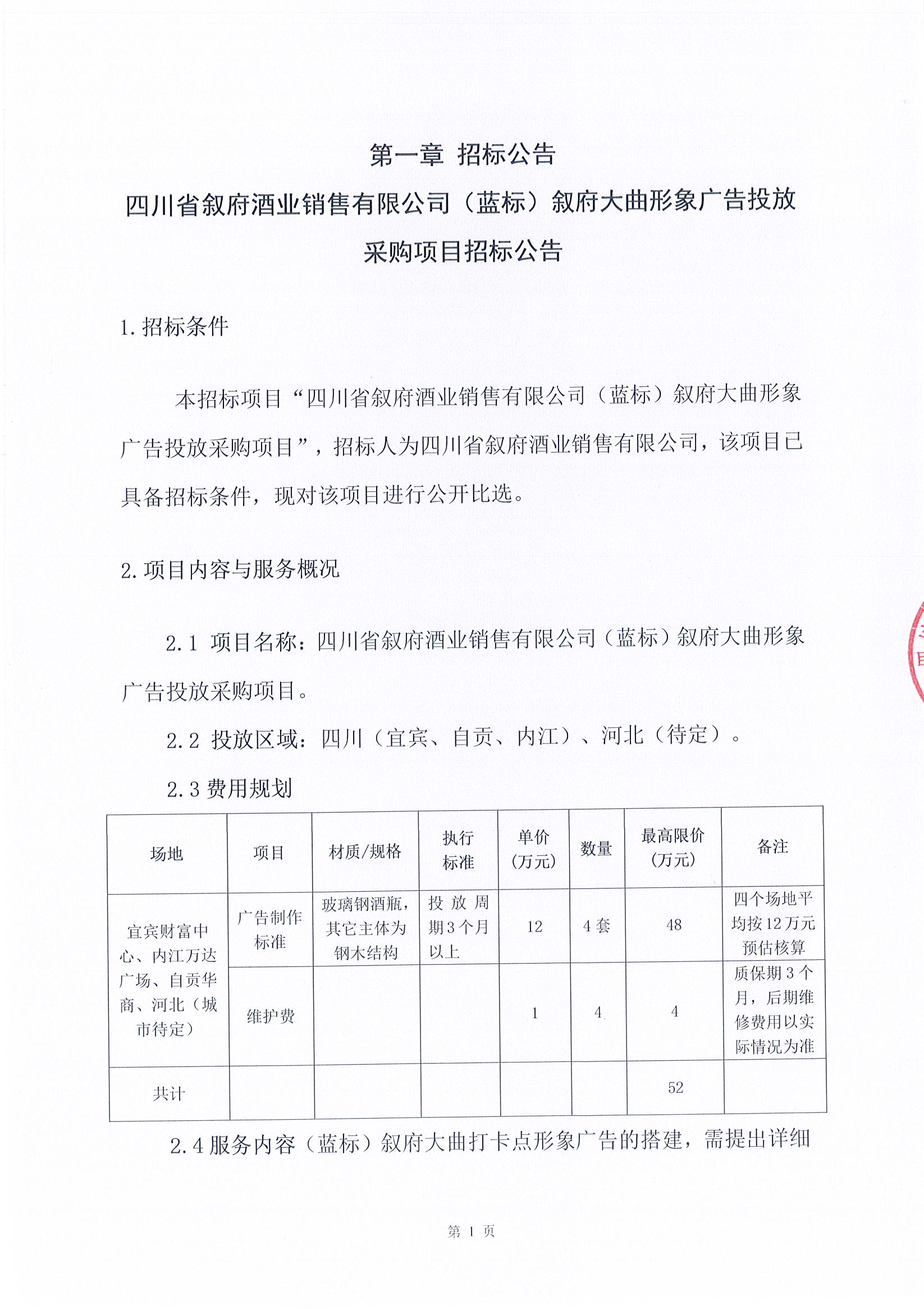 四川省敘府酒業(yè)銷售有限公司(藍(lán)標(biāo))敘府大曲形象廣告投放采購項(xiàng)目公開比選公示公告