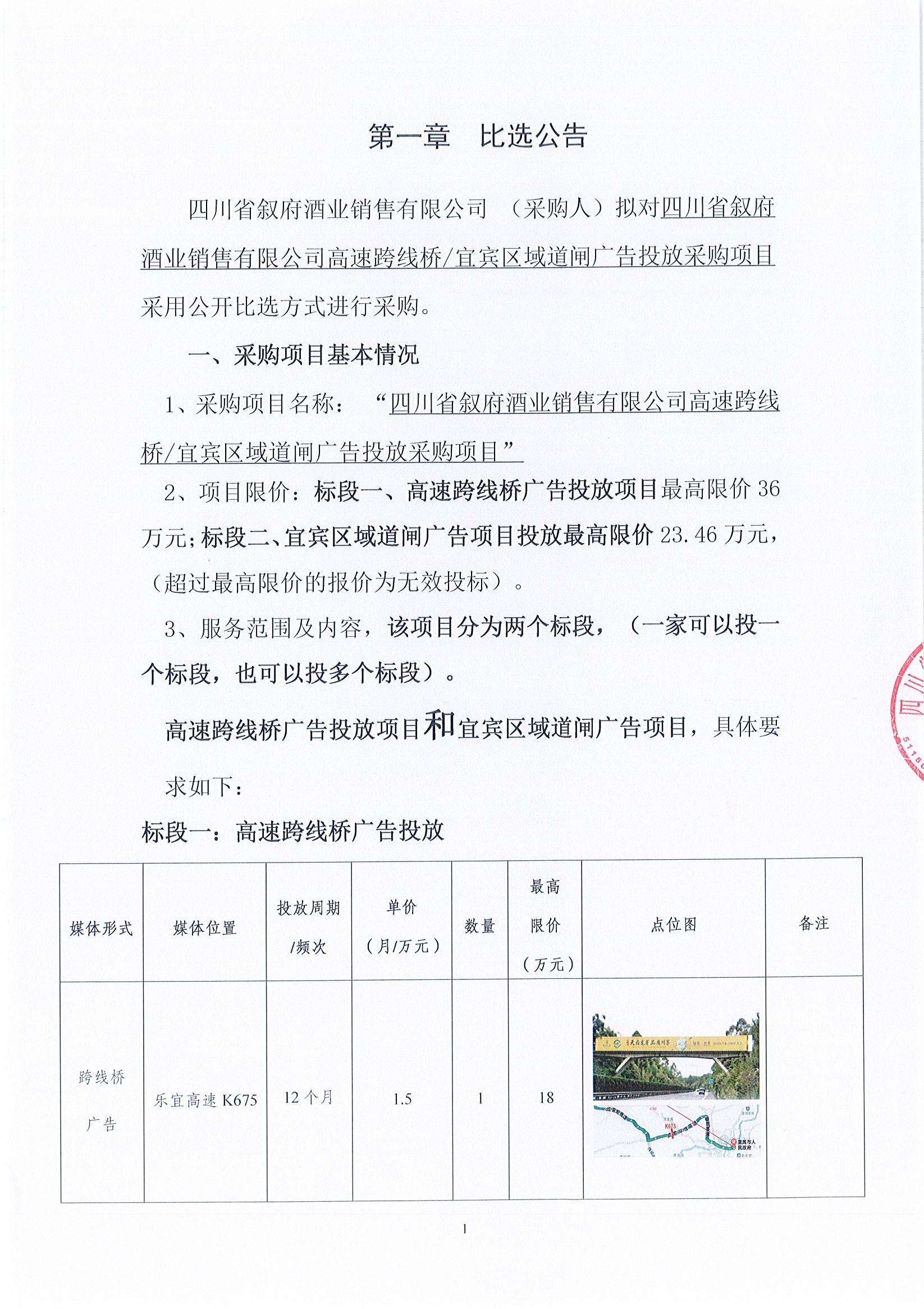 四川省敘府酒業(yè)銷售有限公司高速跨線橋/宜賓區(qū)域道閘廣告投放采購項目公開比選公示公告