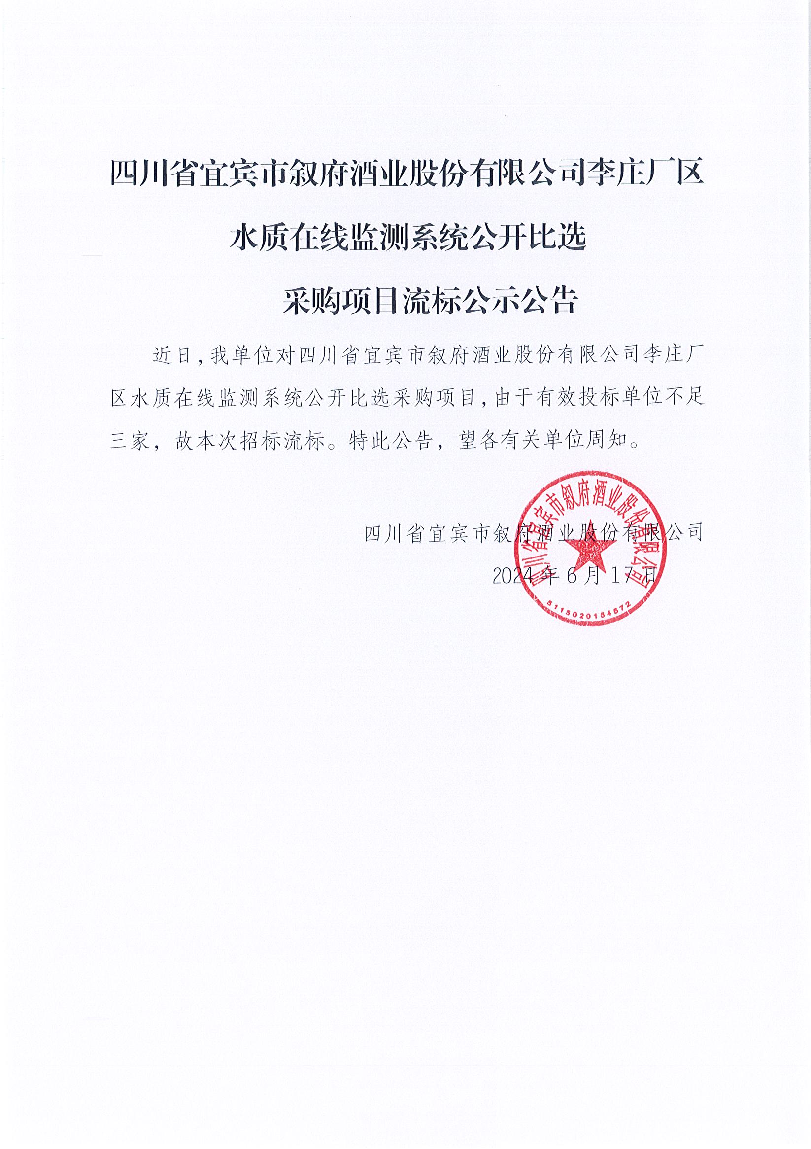 四川省宜賓市敘府酒業(yè)股份有限公司翠屏山基地和李莊基地空調采購項目比選結果公示