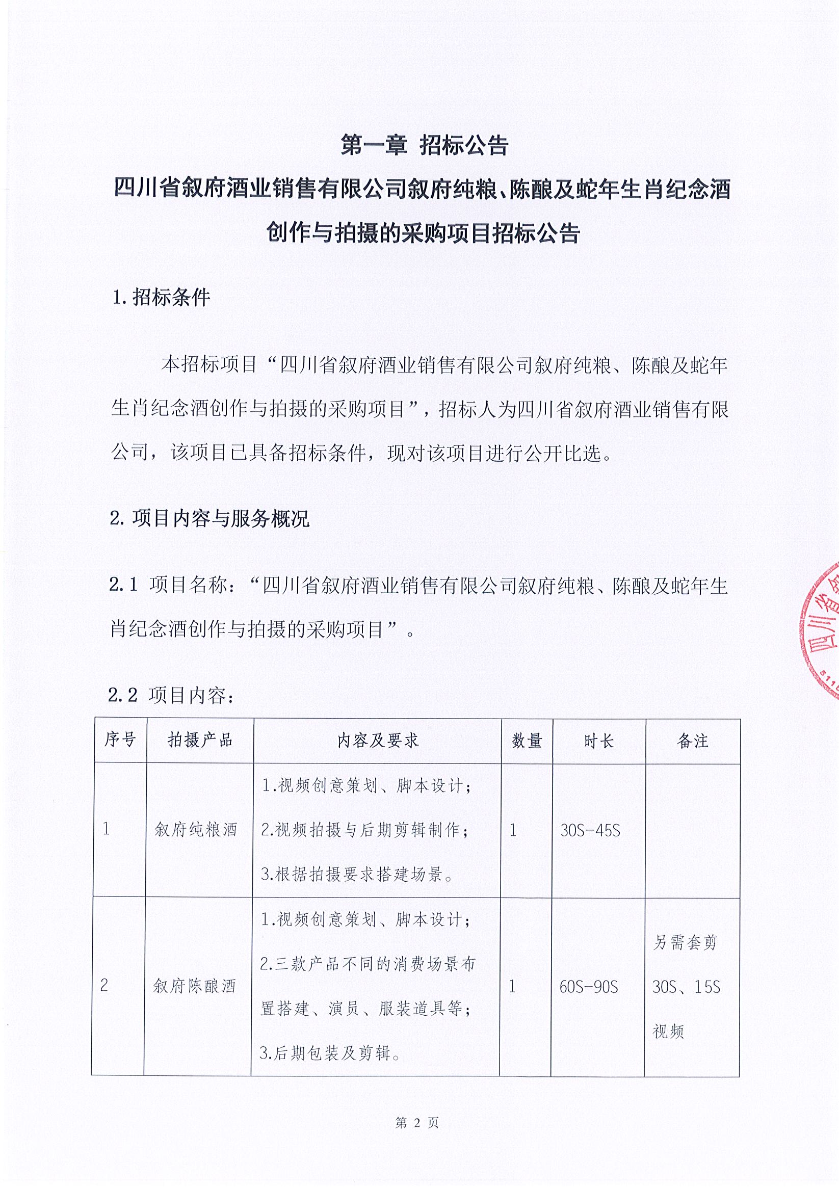 四川省敘府酒業(yè)銷售有限公司敘府純糧、陳釀及蛇年生肖紀(jì)念酒創(chuàng)作與拍攝的采購(gòu)項(xiàng)目比選公示公告