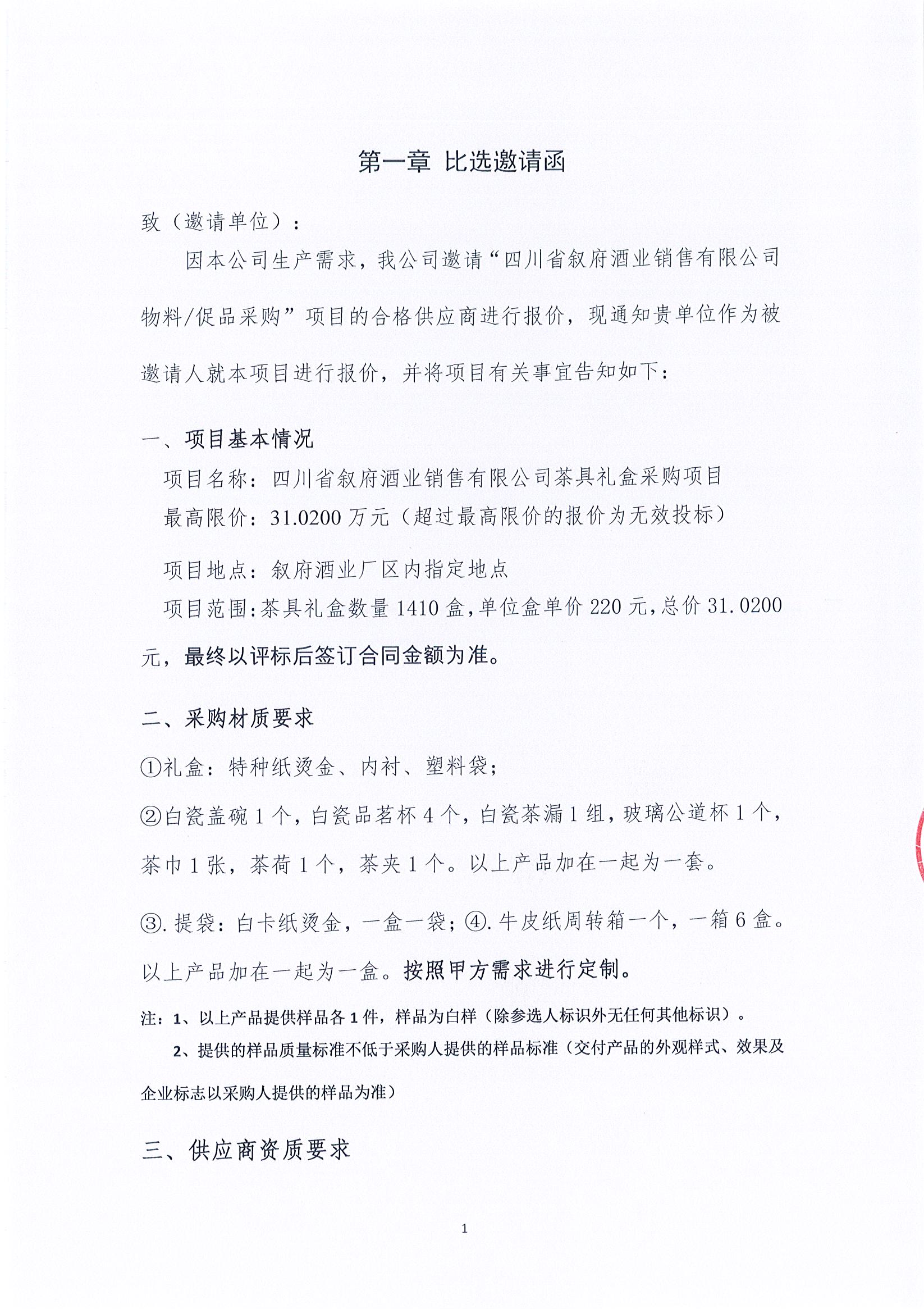 四川省敘府酒業(yè)銷(xiāo)售有限公司茶具禮盒采購(gòu)項(xiàng)目