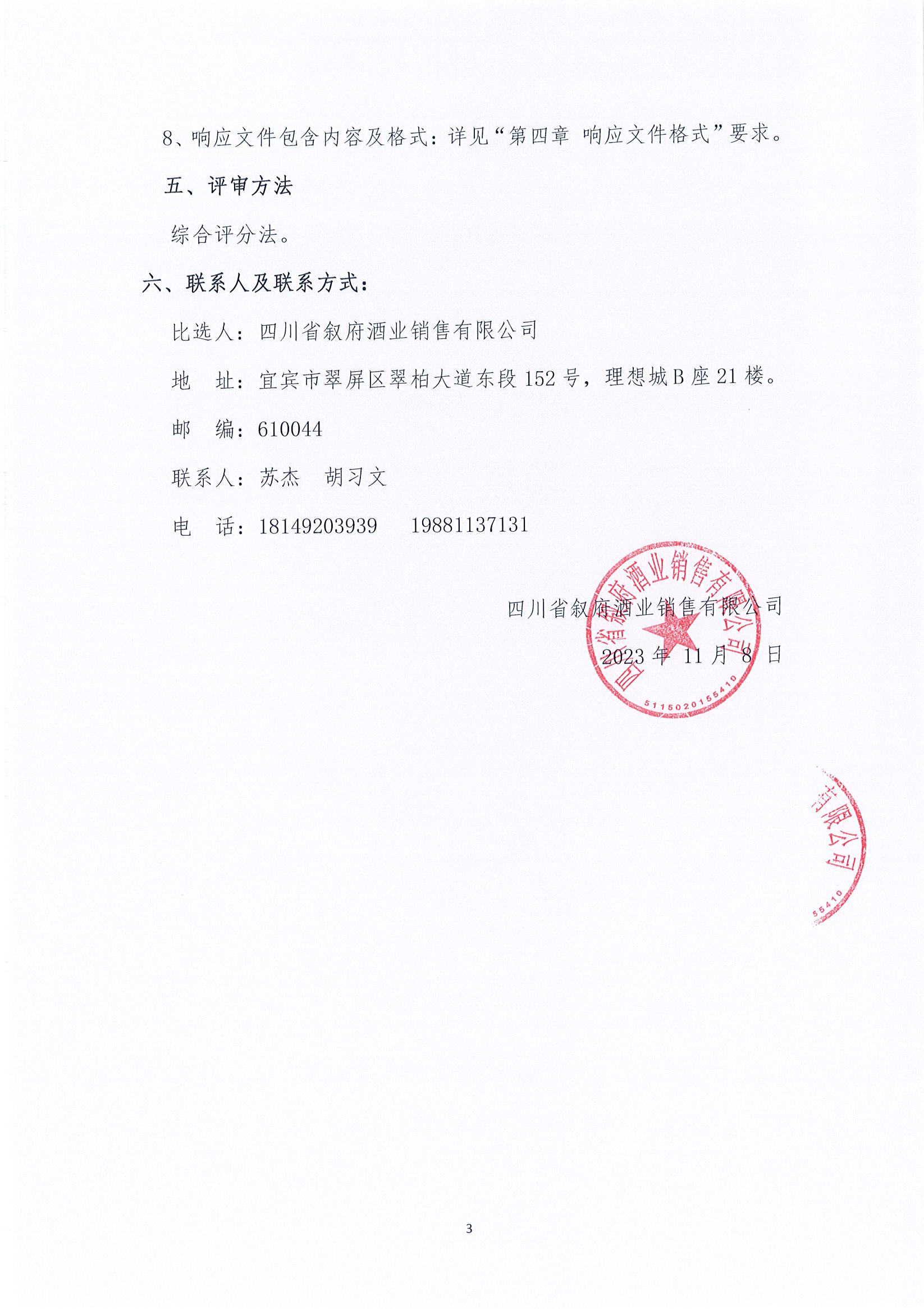 四川省敘府酒業(yè)銷(xiāo)售有限公司敘府大曲(藍(lán)標(biāo))產(chǎn)品TVC的創(chuàng)作與拍攝采購(gòu)項(xiàng)目中標(biāo)結(jié)果公示公告