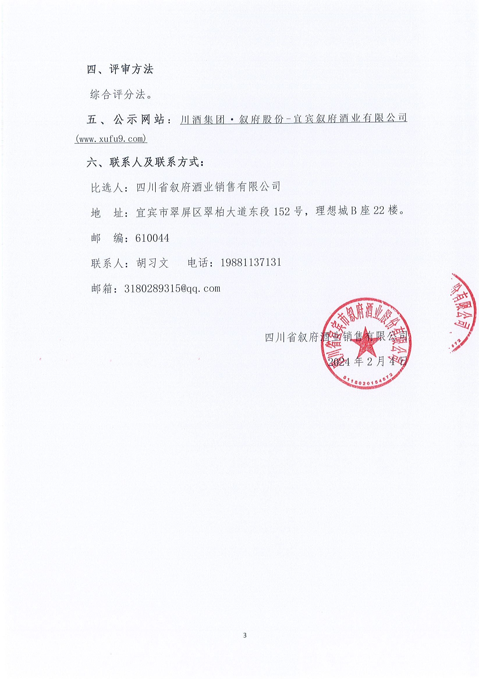 四川省宜賓市敘府酒業(yè)股份有限公司 2024年春季糖酒會(huì)(會(huì)展中心場(chǎng)地展)場(chǎng)地租賃中標(biāo)結(jié)果公示公告