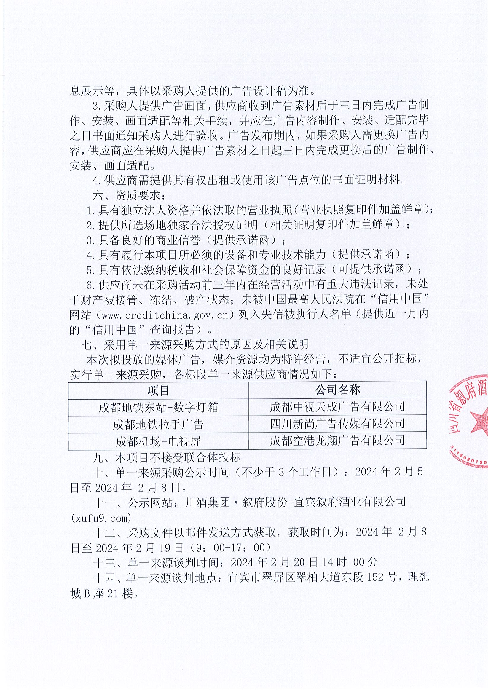 四川省敘府酒業(yè)銷售有限公司2024年春季糖酒會場地設計搭建服務采購項目掛網(wǎng)公示公告
