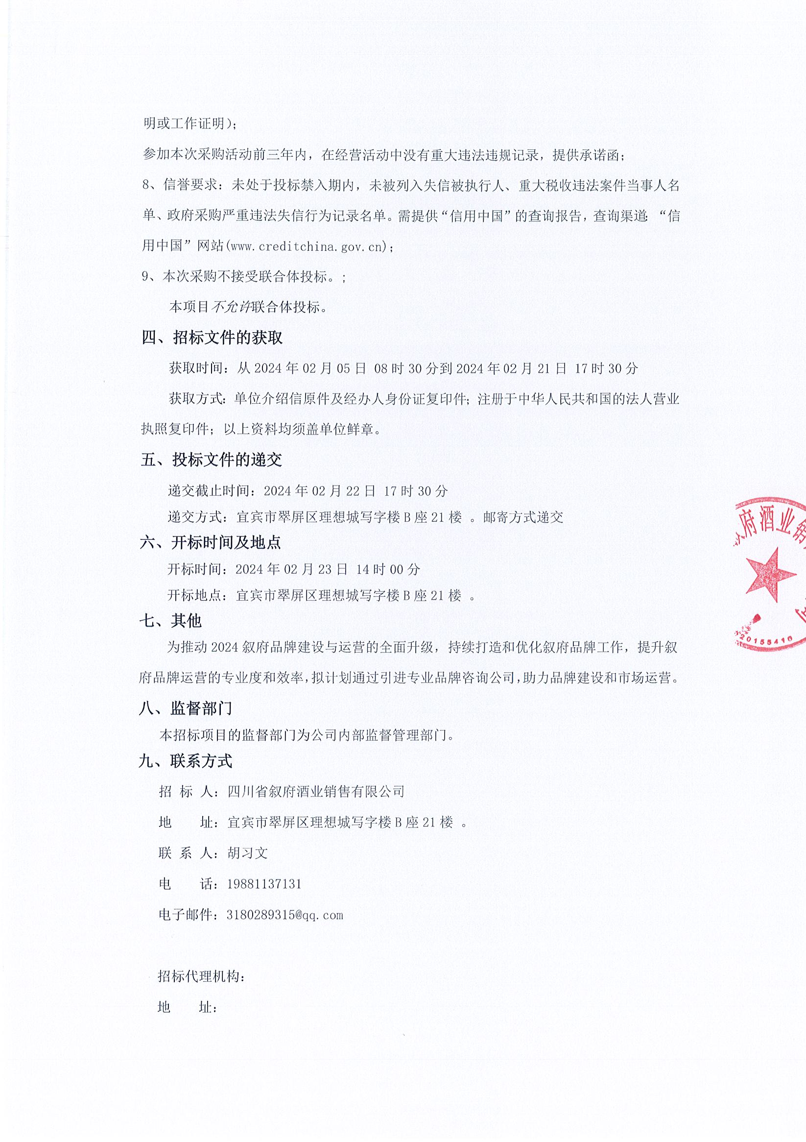 四川省敘府酒業(yè)銷售有限公司2024年春季糖酒會廣告投放項(xiàng)目單一來源采購公告