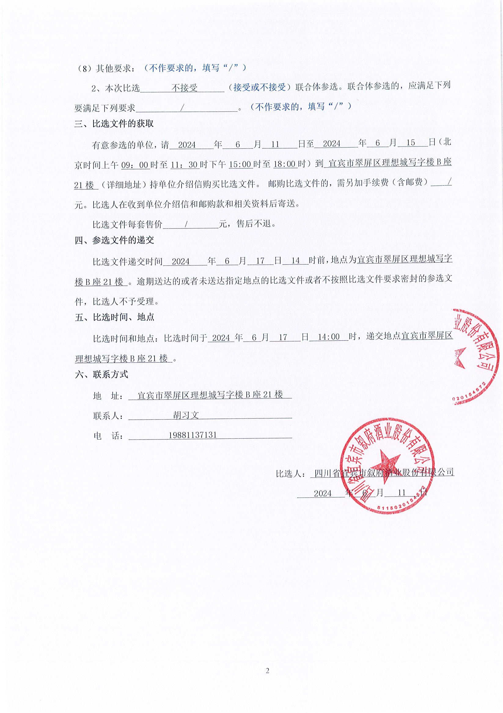 四川省敘府酒業(yè)銷售有限公司高速跨線橋/宜賓區(qū)域道閘廣告投放采購項目比選結果公示公告