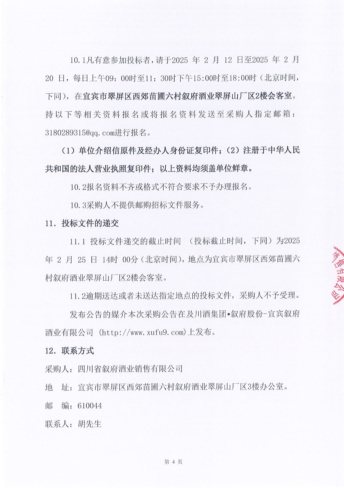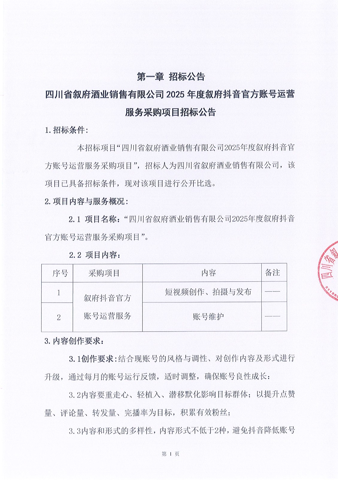 四川省敘府酒業(yè)銷售有限公司2025年度敘府品牌設計服務采購項目公開比選公示公告