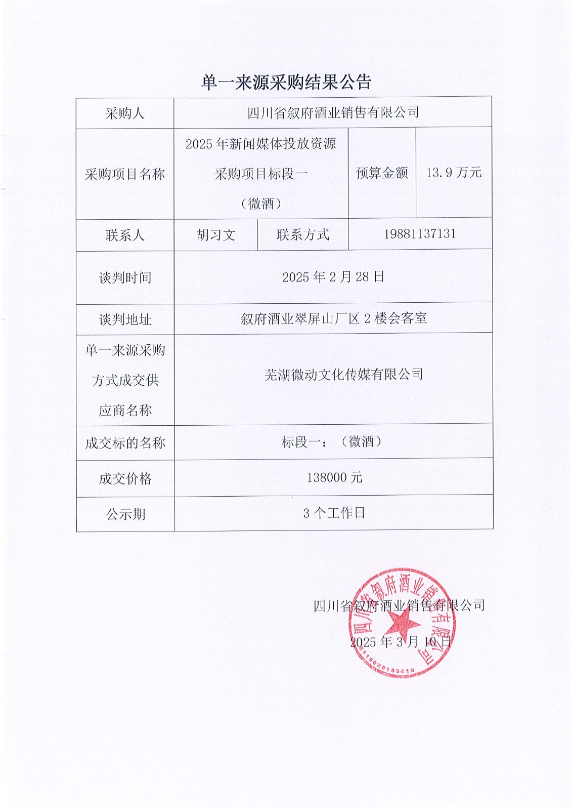 四川省敘府酒業(yè)銷售有限公司2025年春季糖酒會廣告投放采購項目流標公示公告