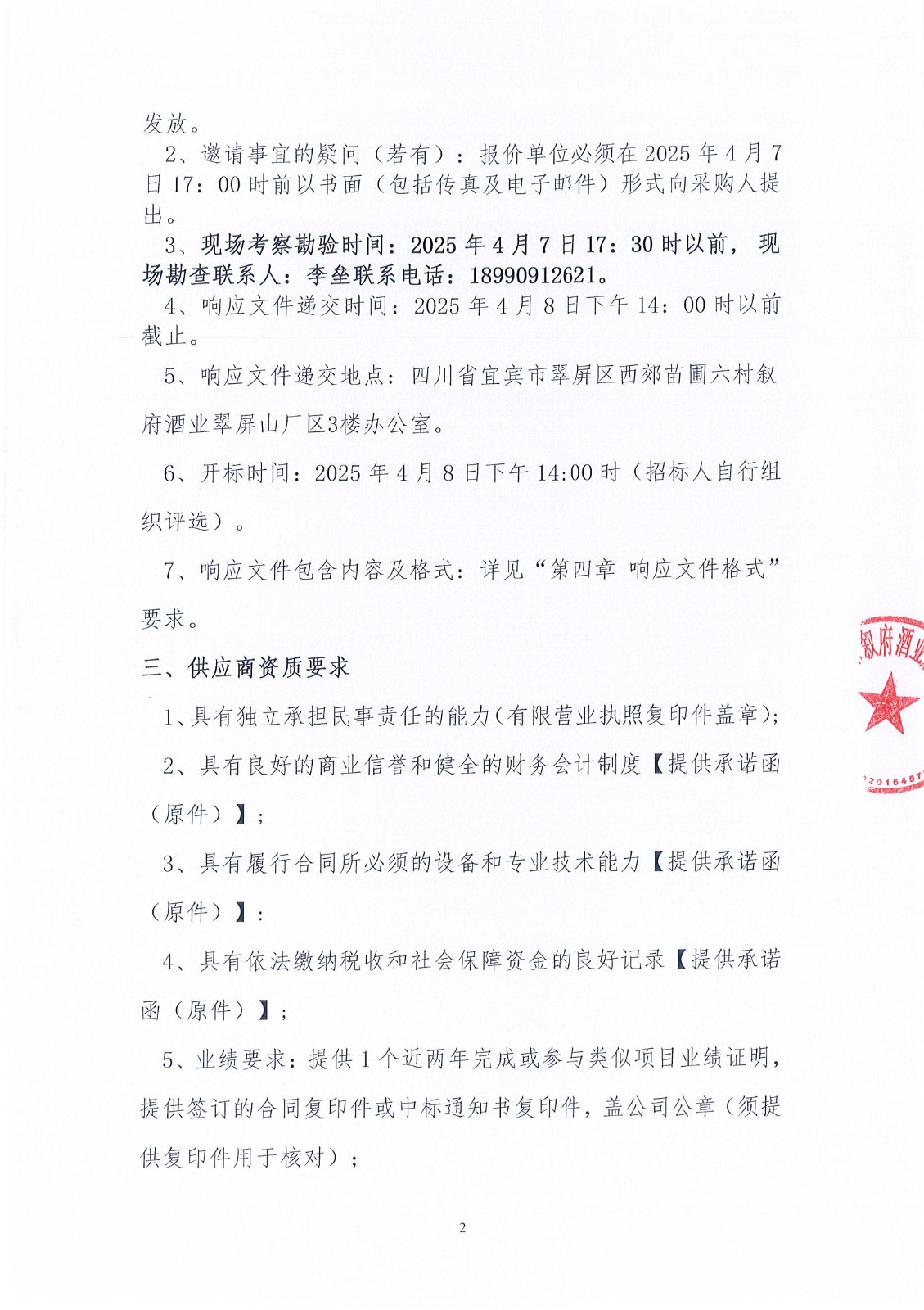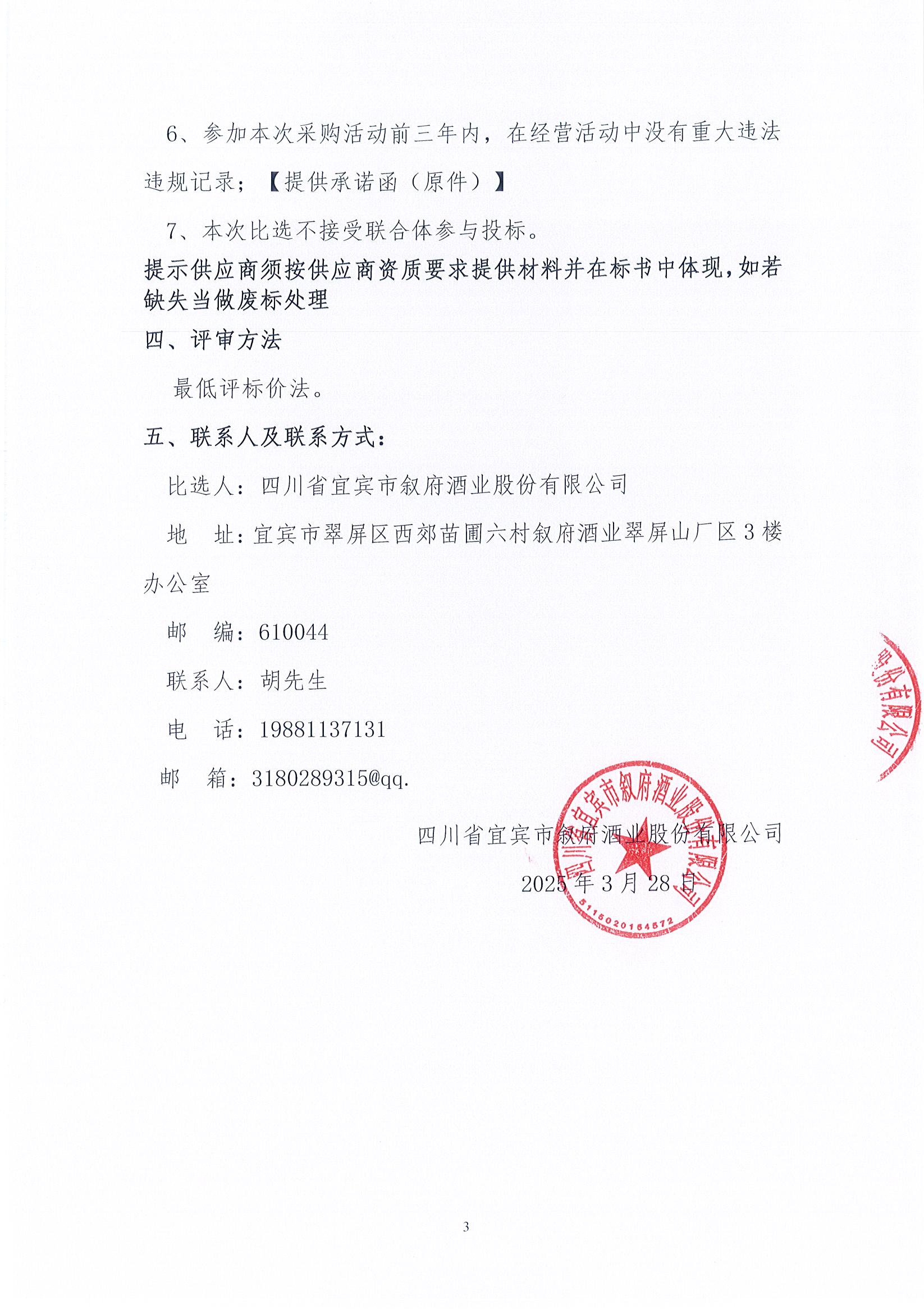 四川省宜賓市敘府酒業(yè)股份有限公司2025年度生產一線工作裝采購項目比選結果公示