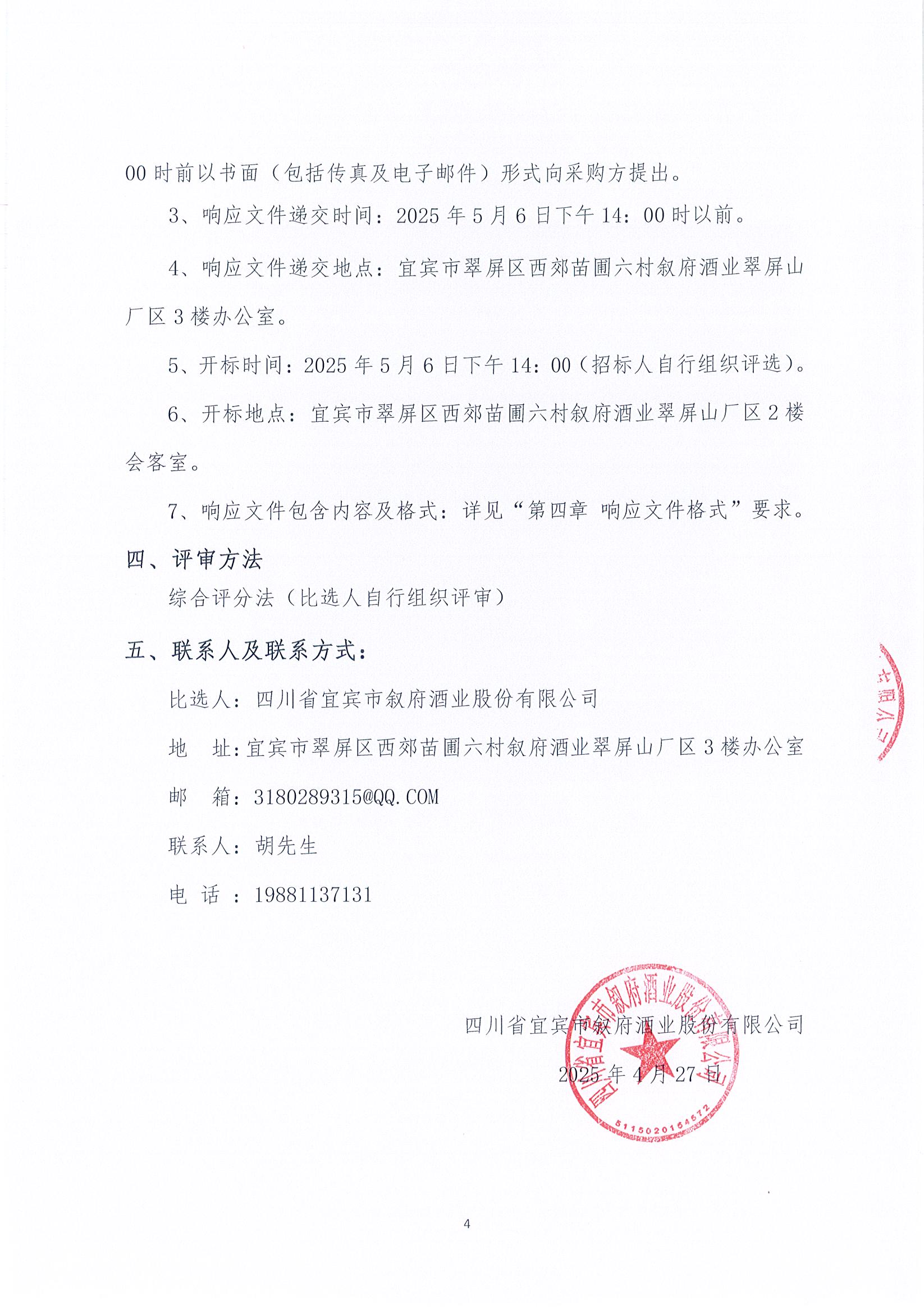 四川省宜賓市敘府酒業(yè)股份有限公司李莊陶壇安裝配套輸酒管道及噴淋系統(tǒng)采購(gòu)項(xiàng)目比選結(jié)果公告