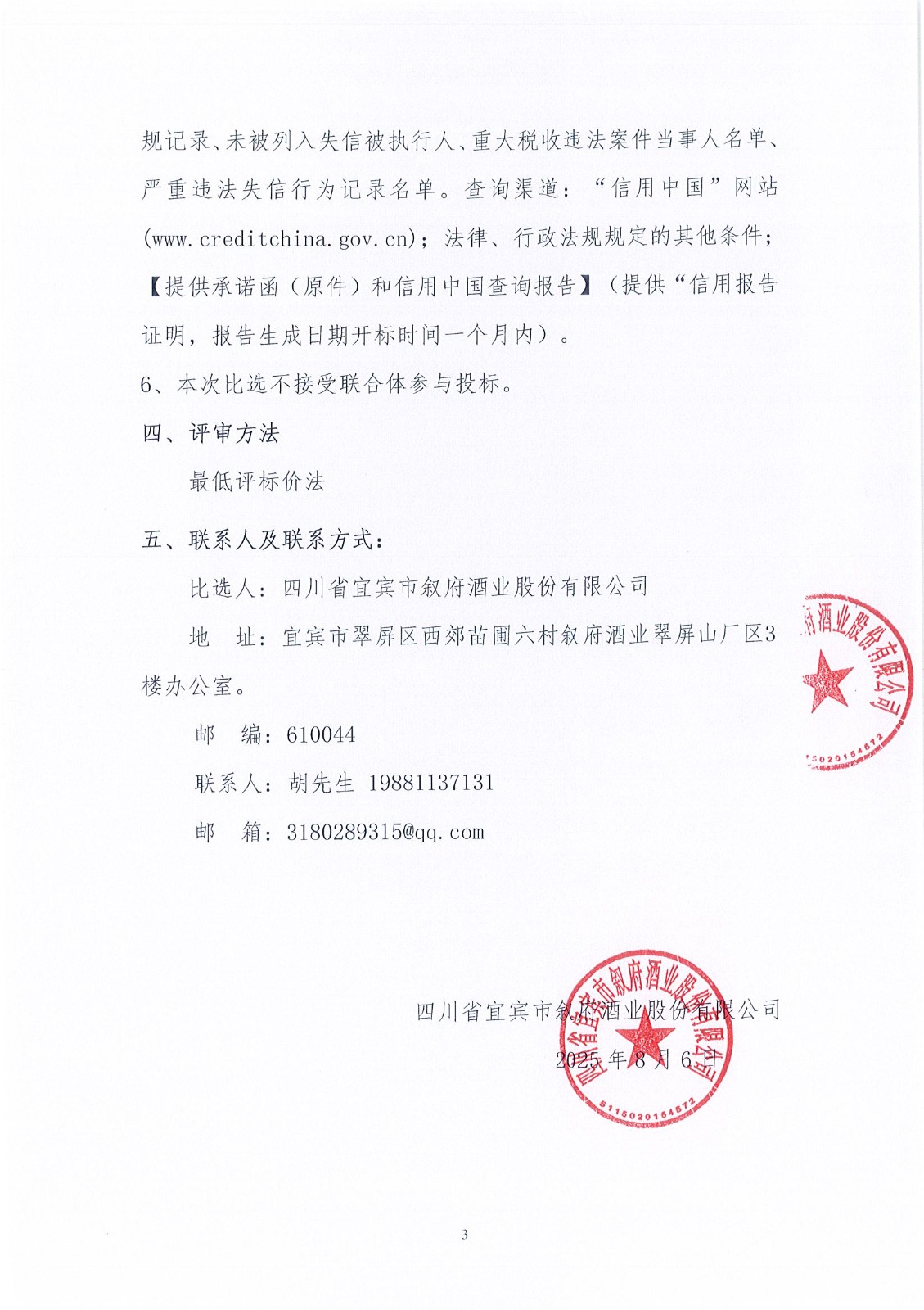 四川省宜賓市敘府酒業(yè)股份有限公司2025年熱季檢修項(xiàng)目流標(biāo)公告