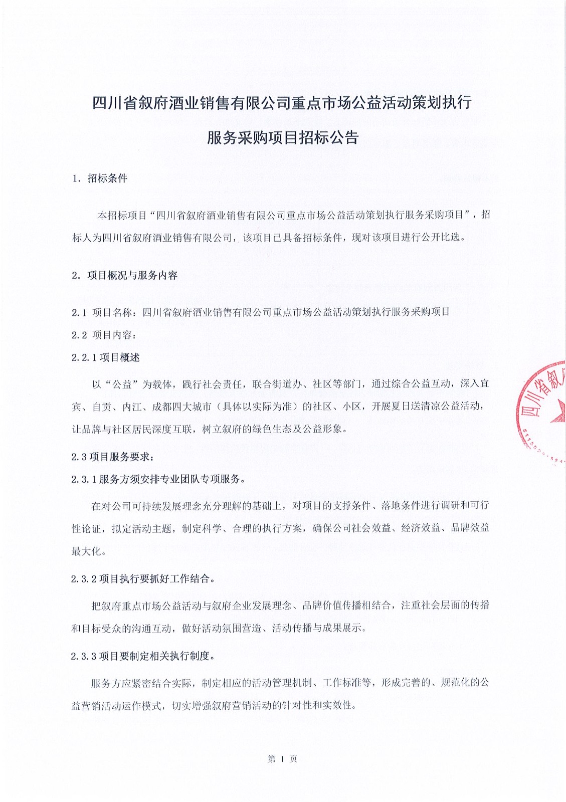 四川省敘府酒業(yè)銷售有限公司宜賓地標(biāo)建筑長江之珠廣告投放采購項目單一來源采購公告