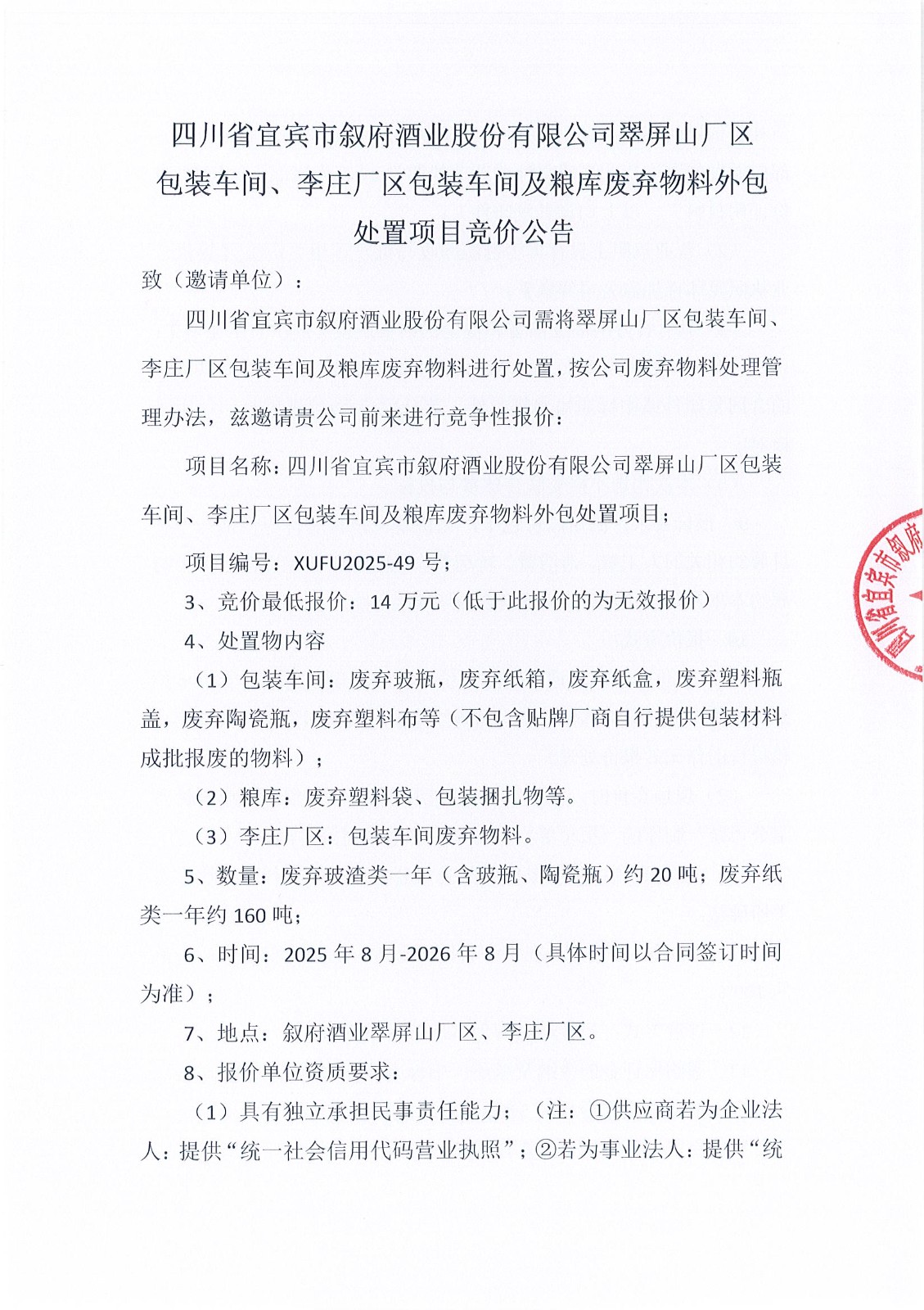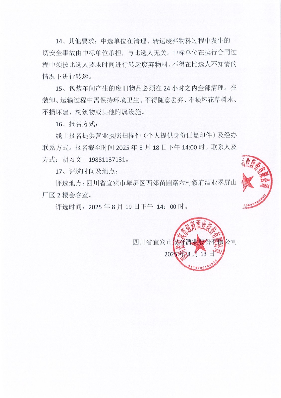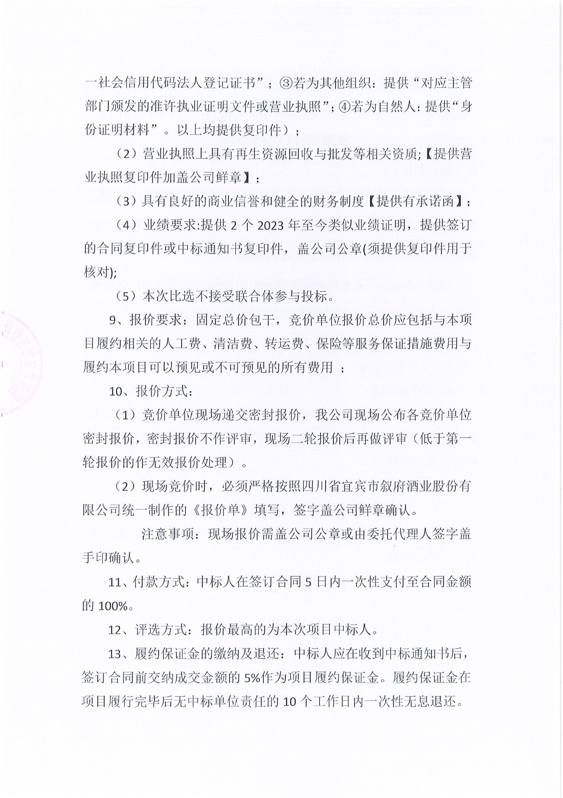 第二次四川省宜賓市敘府酒業(yè)股份有限公司熱季檢修李莊自動化量水設(shè)備制安采購項(xiàng)目