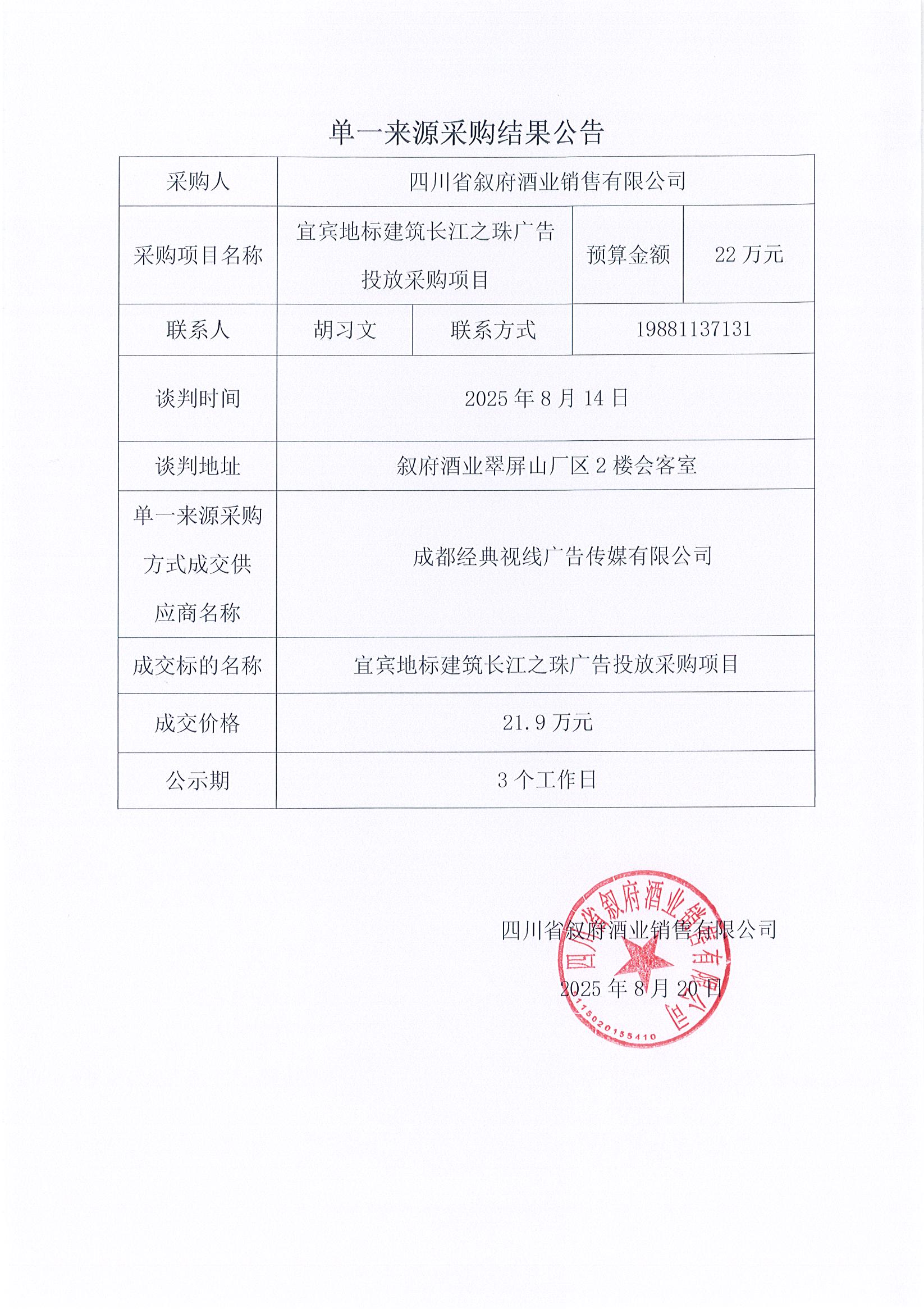 四川省敘府酒業(yè)銷售有限公司敘府品牌直播間采購項目比選結(jié)果公示公告